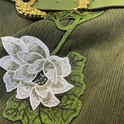 Ensemble chemise à pompons et jupe à imprimé fleuri vert