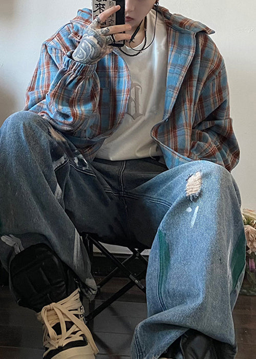 Loose Yellow Hooded Plaid Cotton Men Shirts Spring