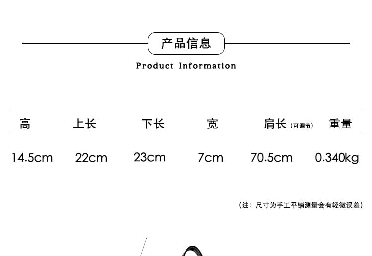| Upper Width | Bottom Width | Height | Thickness | Strap Length |