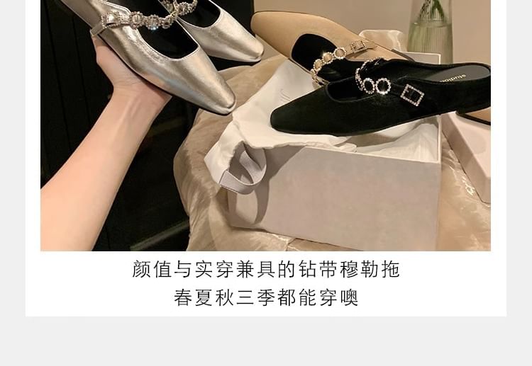 Leather Mules Faux Wedge Hidden Mary Rhinestone Jane