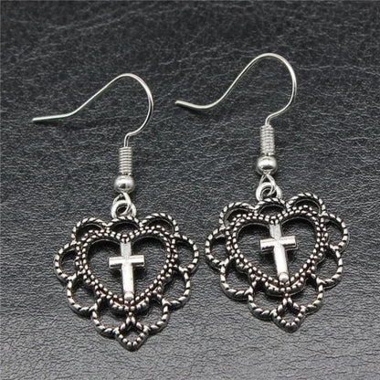 Montrez votre amour et votre foi avec nos boucles d'oreilles Love Heart Cross. Ces boucles d'oreilles élégantes présentent un magnifique motif de cœur et de croix, ce qui en fait l'accessoire parfait pour n'importe quelle tenue. Montrez votre style et votre dévotion avec nos boucles d'oreilles Love Heart Cross.
