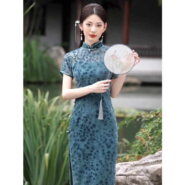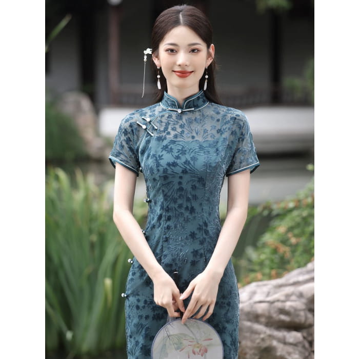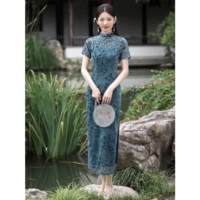 Transformez-vous en une vision d'élégance avec le Cheongsam élégant Moonflower. Cette superbe robe, aux motifs complexes de fleurs de lune, respire la grâce et la sophistication. Adoptez la sensation de luxe et démarquez-vous lors de tout événement formel.