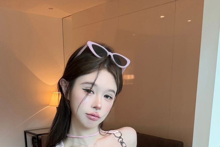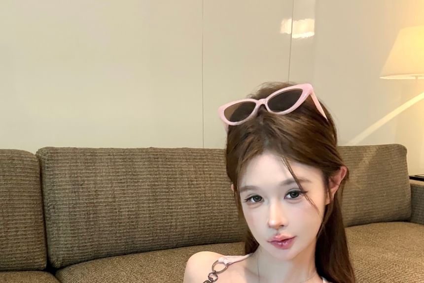Patterned Print Buckle Top Tank Neck Square