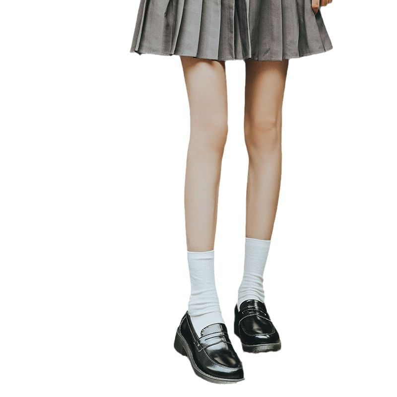 Plain Faux Loafers Leather
