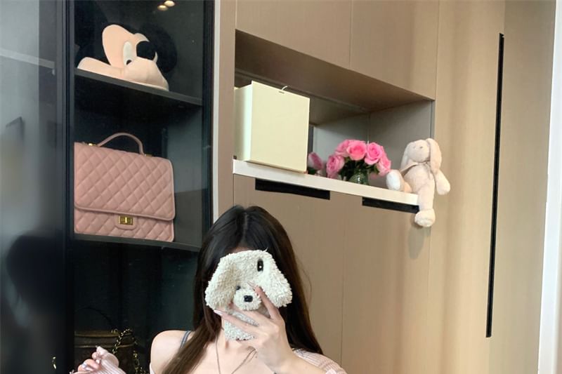 Plain Lace Top Spaghetti Mini Knit / Bow Trim Bodycon Neck Strap Dress Long-Sleeve Scoop