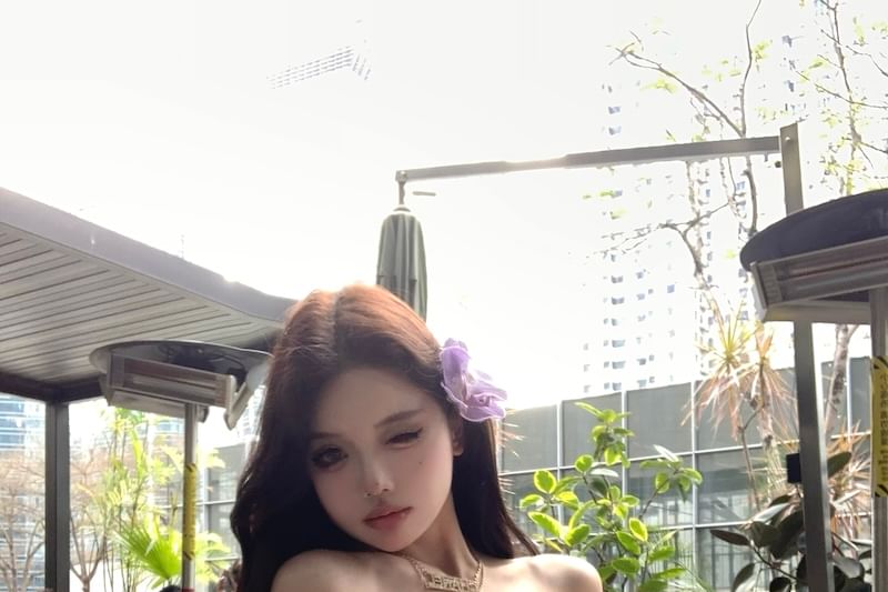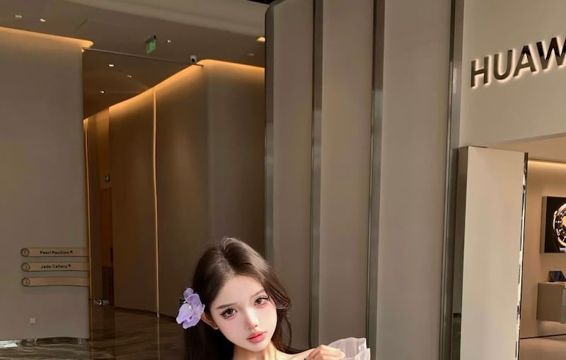 Long-Sleeve Off-Shoulder Plain Ruffle Trim Tunic Blouse