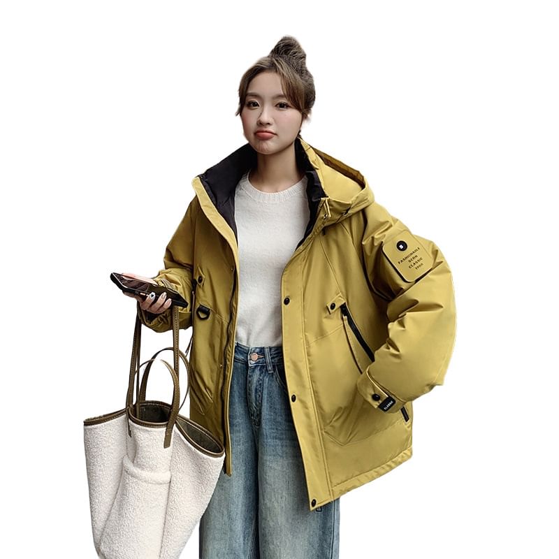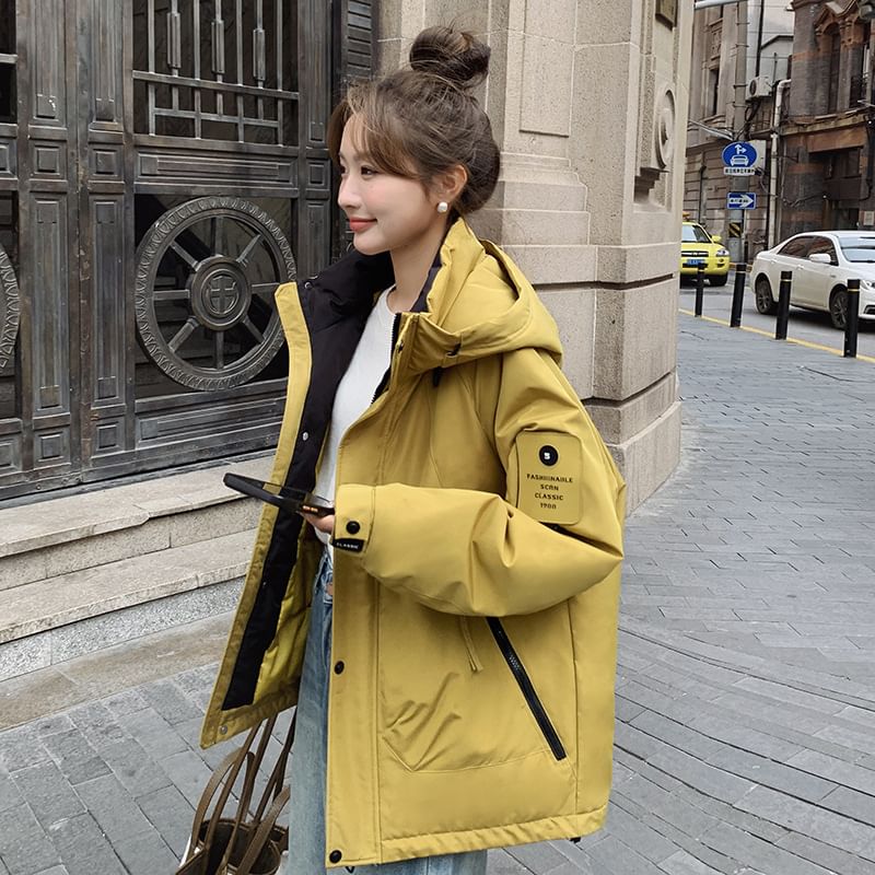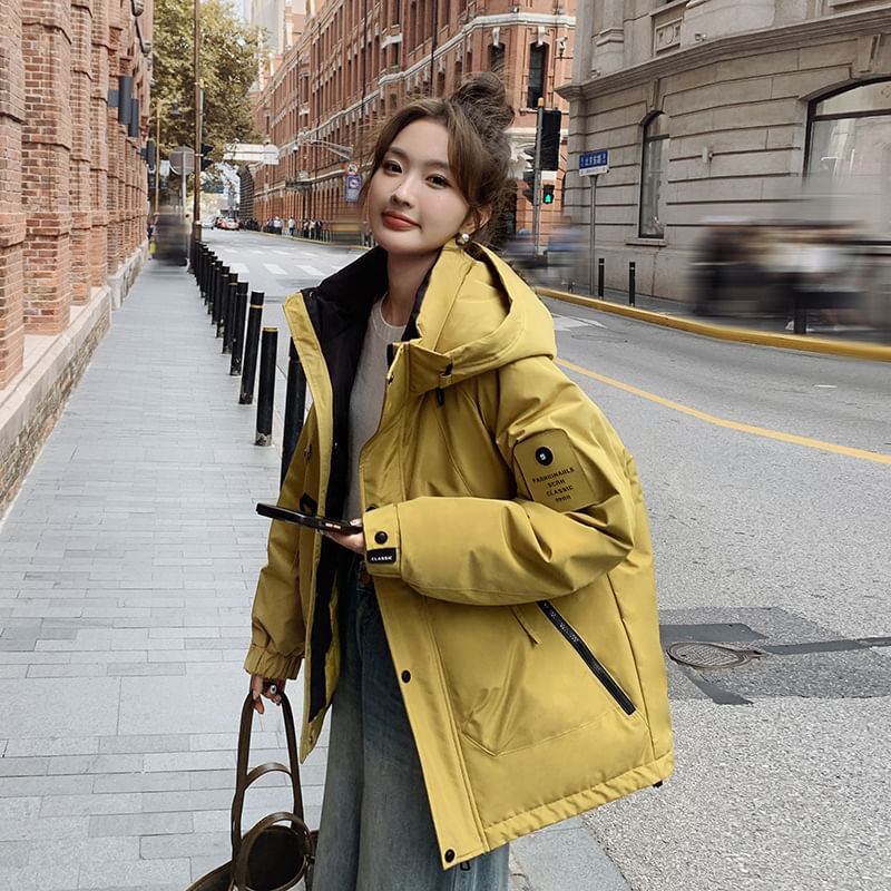 Plain Padded Hooded Lettering Logo Zip Jacket