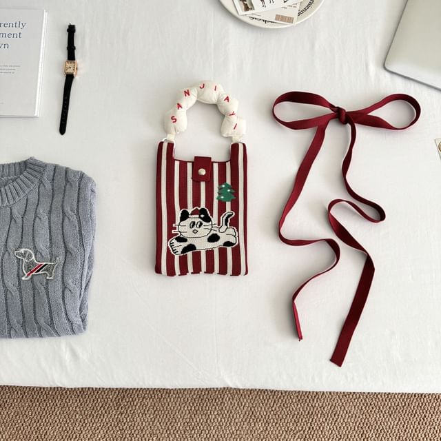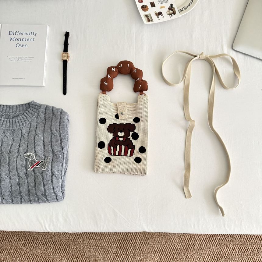 Top Donut Handle Cartoon Print Knit Crossbody Bag