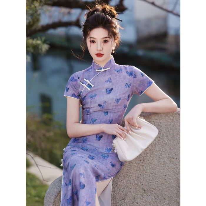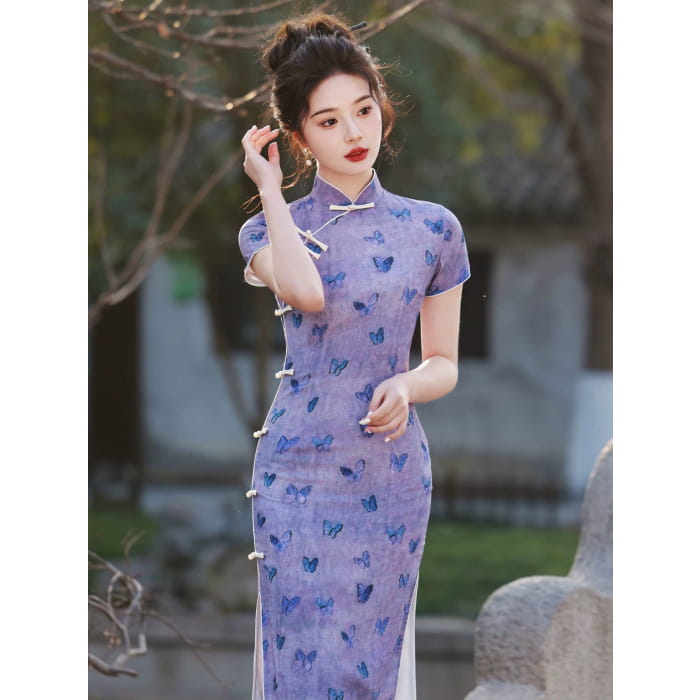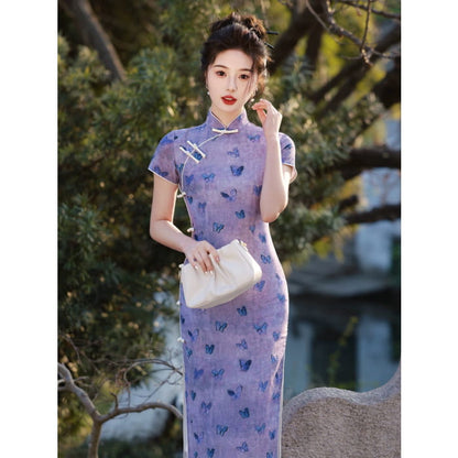 Rehaussez votre style avec notre élégant Cheongsam Purple Butterfly. Cette robe traditionnelle chinoise arbore un superbe motif de papillon violet, ajoutant une touche de grâce et de féminité à votre garde-robe. Parfait pour les occasions spéciales ou comme pièce de déclaration au quotidien. Appropriez-vous la beauté et la tradition de l'Extrême-Orient.