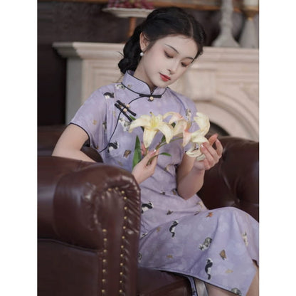 Libérez votre élégance intérieure avec notre robe cheongsam violette. Sa superbe teinte violette vous fera sortir du lot en toute occasion. Conçue avec le plus grand soin, cette robe est un mélange parfait de sophistication et de charme. Sentez-vous confiante et élégante dans notre robe cheongsam violette.