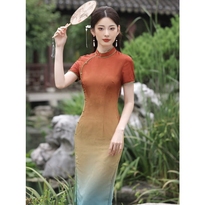 Rehaussez votre look avec notre élégante robe longue cheongsam à manches courtes Rainbow Bridge. Avec son design dynamique et sa coupe confortable, cette robe est parfaite pour toutes les occasions. Adoptez la beauté de l'arc-en-ciel et démarquez-vous avec style.