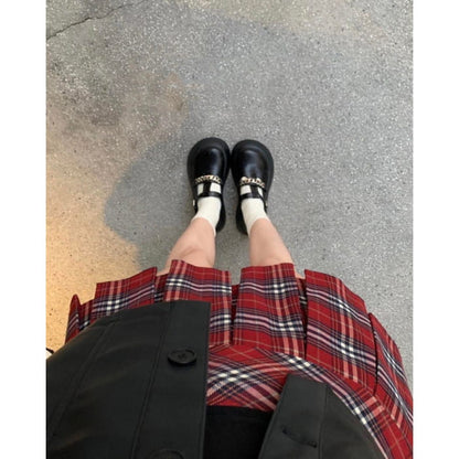 Cette jupe plissée à carreaux rouges est un ajout intemporel à votre garde-robe. Le motif à carreaux rouges classique associé au design plissé élégant en fait une pièce polyvalente et avant-gardiste. Aussi confortable qu'élégante, cette jupe rehaussera sans effort n'importe quelle tenue. Parfait pour les occasions décontractées et formelles.