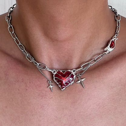 Laissez-vous séduire par l'élégance du collier chaîne cœur en pierre rouge. Doté d'un superbe pendentif cœur en pierre rouge sur une chaîne délicate, ce collier ajoute une touche de sophistication à n'importe quelle tenue. Rehaussez votre style avec cette pièce accrocheuse et sentez-vous confiant et élégant où que vous alliez.