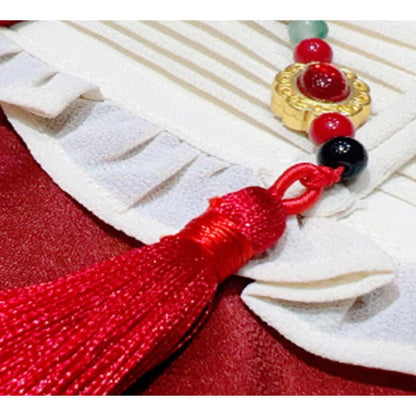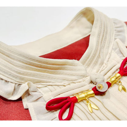 Ensemble chemise à pampilles rouge et jupe à imprimé bambou