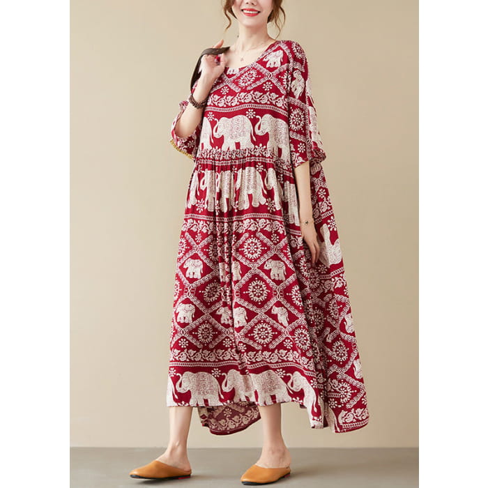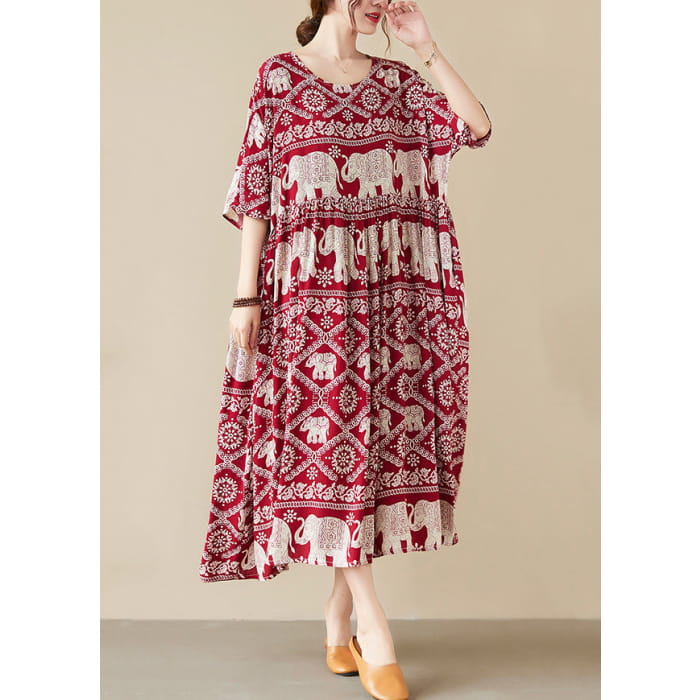 La robe longue à poches froissées rouges d'été VB1011 présente un design élégant et épuré, parfait pour la saison estivale.