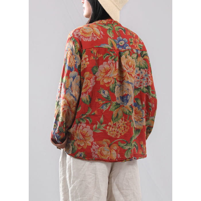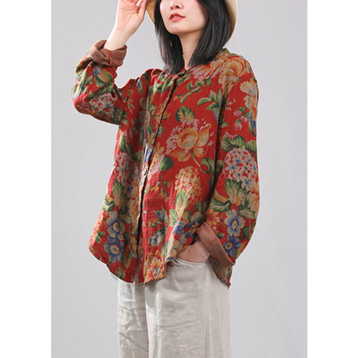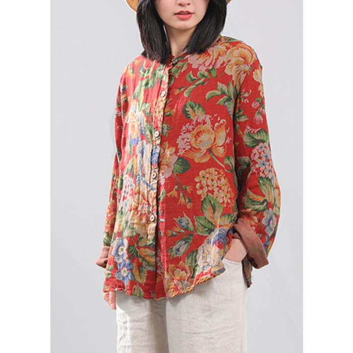 Chemises en coton à manches longues et col rond rétro rouge VB1012