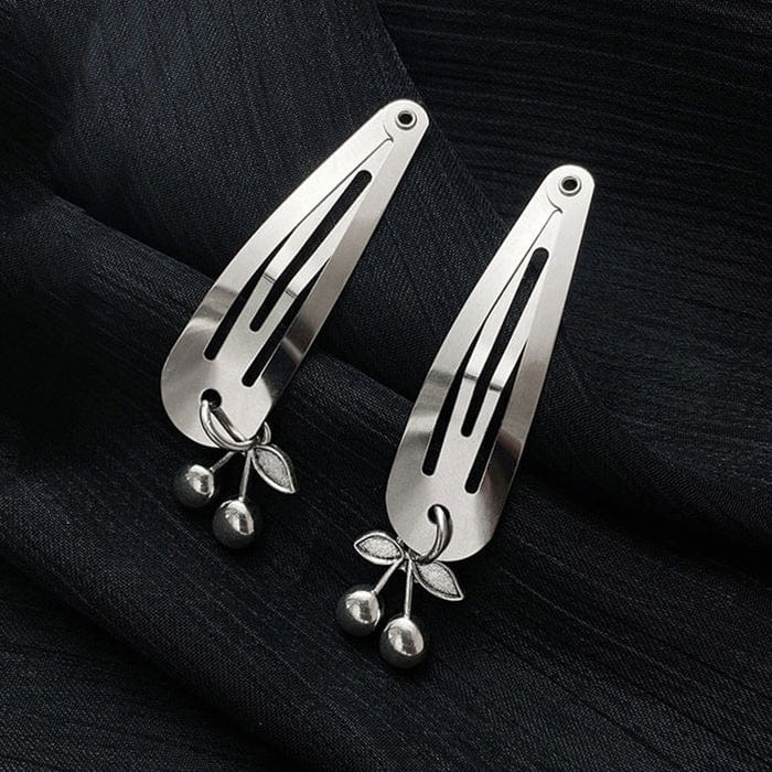 Pinces à cheveux cerises argentées