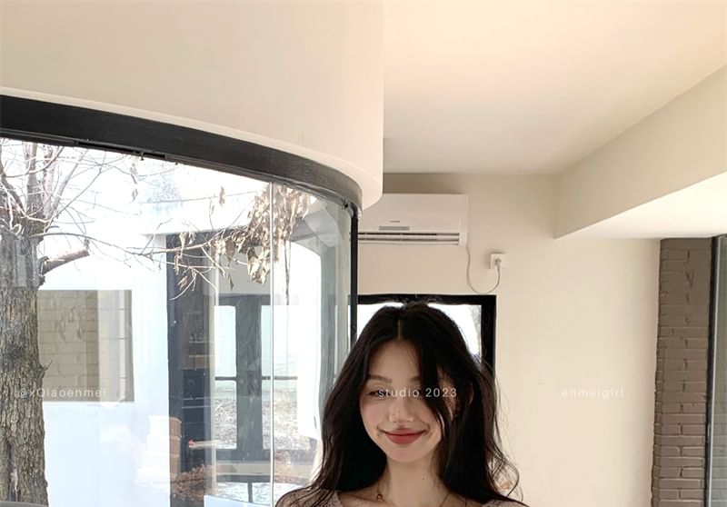 Spaghetti Strap Plain Velvet Midi Sheath Dress / Long Sleeve Round Neck Plain Cable Knit Maxi Sheath Dress