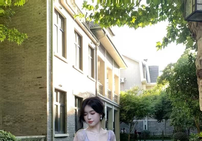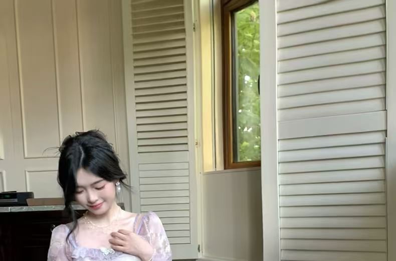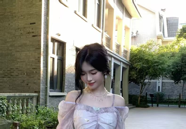 Trim A-Line Dress Accent Maxi Tie Long-Sleeve Ruffle Butterfly Shoulder Cold Dye