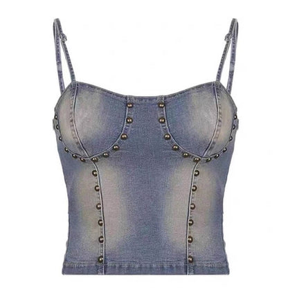 Rehaussez votre garde-robe avec notre haut en denim vintage à rivets. Fabriqué en denim de haute qualité et orné de détails à rivets, ce haut offre un look classique mais tendance. Parfait pour toutes les occasions, superposez-le avec votre veste préférée ou portez-le seul pour une tenue chic et sans effort.