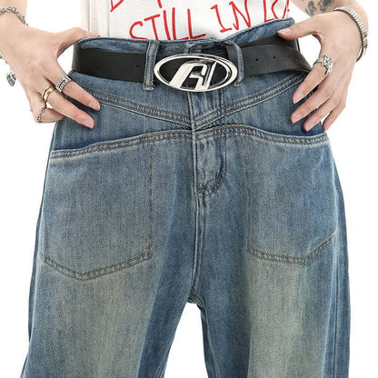 Rehaussez votre style avec notre élégant jean large en denim vintage. Ce jean présente un design en denim vintage intemporel qui rehaussera n'importe quelle tenue. La coupe large de la jambe offre une coupe flatteuse, ce qui en fait le complément parfait à votre garde-robe. Améliorez votre look avec le jean large en denim vintage.