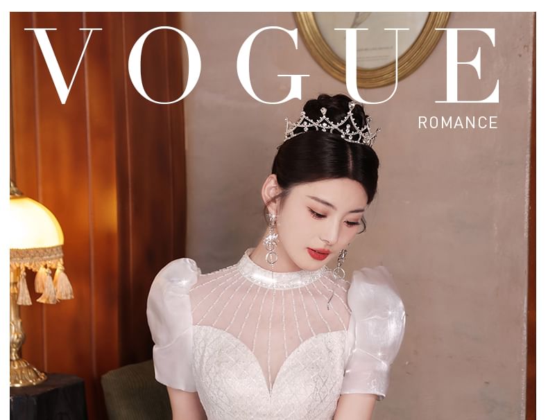 Short-Sleeve Beaded Sequin Mermaid Wedding Gown