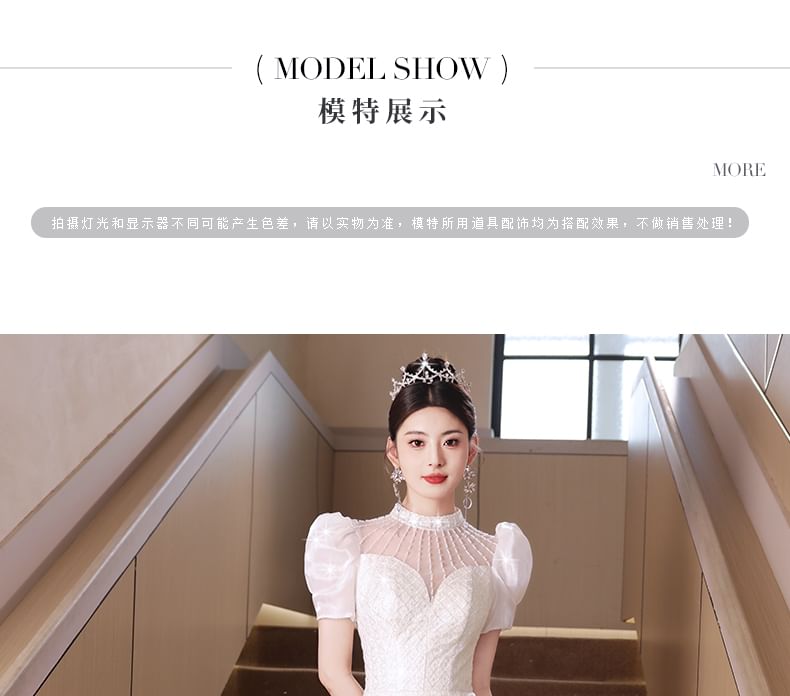 Wedding Gown Mermaid Beaded Short-Sleeve Sequin