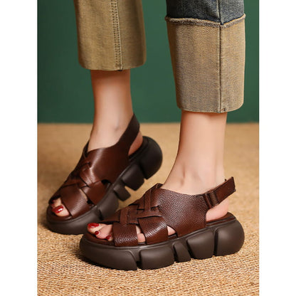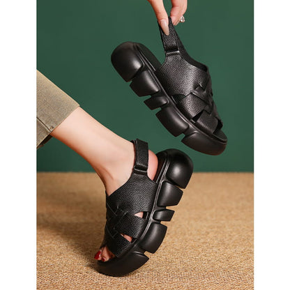 Sandales d'été à plateforme en cuir pour femmes BN1001