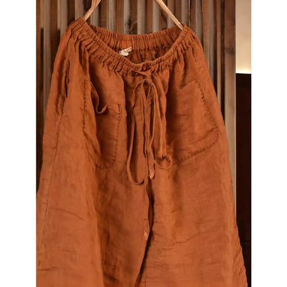 Pantalon sarouel vintage d'été en ramie pour femme BN1008