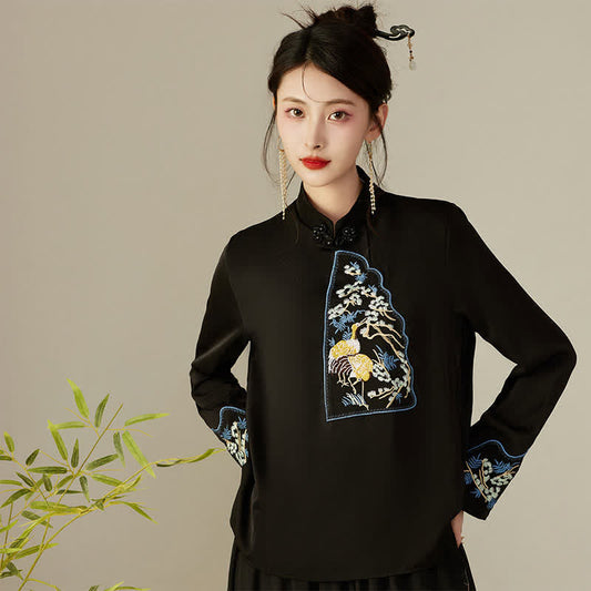 Chemise à broderie de grue vintage avec jupe plissée à imprimé personnage