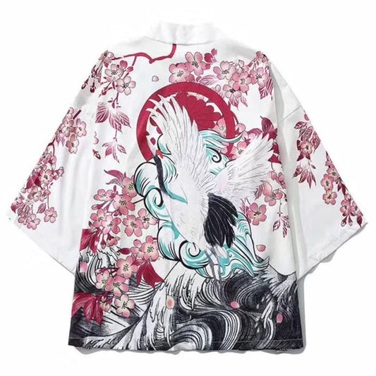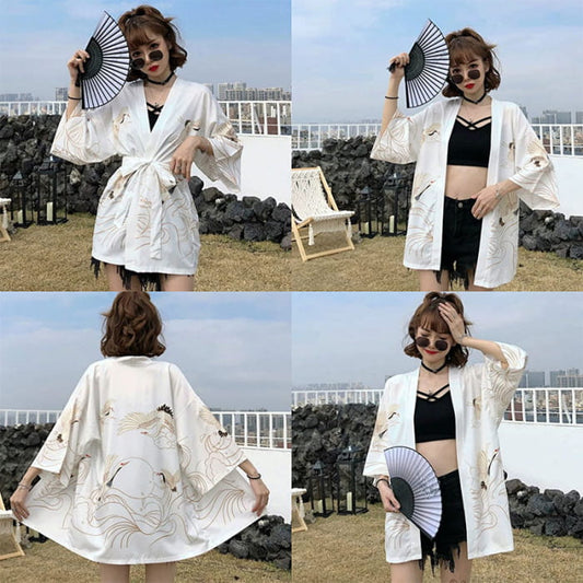 Kimono chinois vintage à motif de grue, vêtement d'extérieur, protection solaire