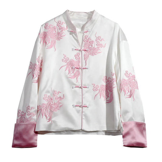 Chemise en satin à manches longues avec boucle et broderie florale vintage