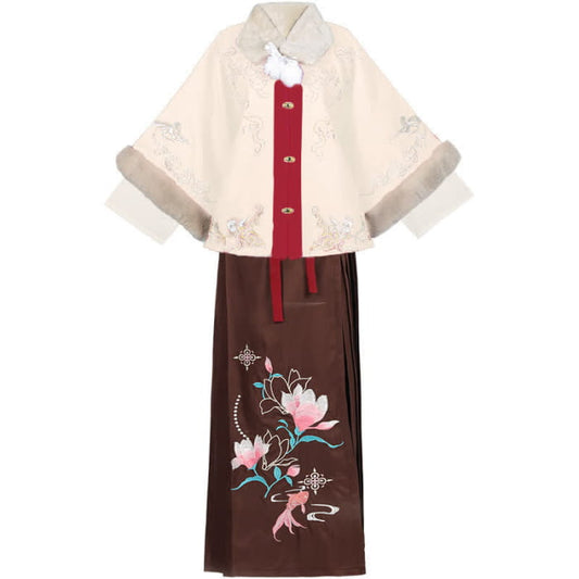 Ensemble manteau et jupe plissée à broderie florale vintage