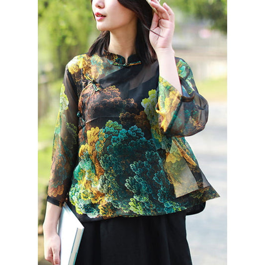Chemise à manches longues en tulle avec col montant et boutons imprimés couleur vintage VB1021