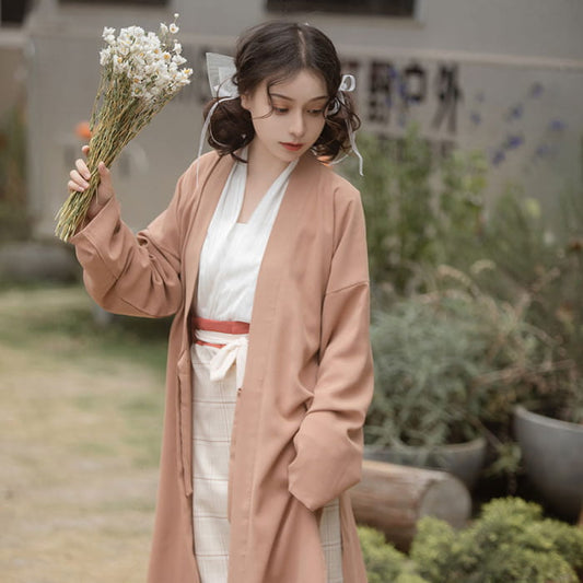 Ensemble de vêtements d'extérieur à carreaux vintage avec jupe et ceinture en quatre pièces