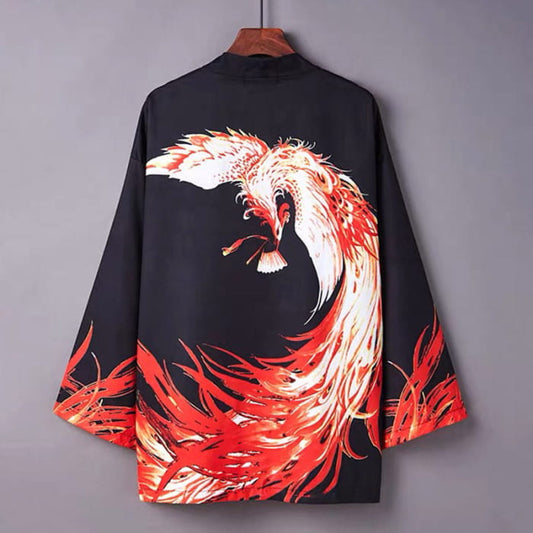 Kimono imprimé phénix vif, vêtement d'extérieur, protection solaire