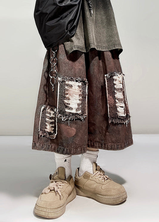 Waist Denim Summer Shorts Vintage Elastic Men Oversized Hole