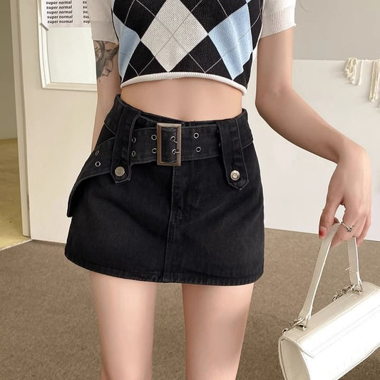 Waist Low Shorts Washed Pocket Denim Straight-Leg