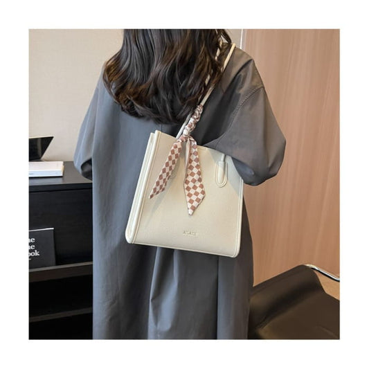 Set: Faux Leather Buckled Tote Bag + Pouch