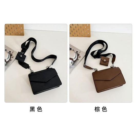 Ensemble : sac à bandoulière à rabat uni en similicuir + porte-monnaie