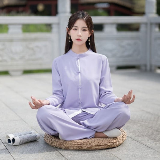 Ensemble : chemisier Hanfu uni à manches longues et col montant + pantalon large uni taille moyenne