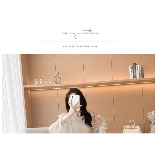Set: Round Neck Plain Ribbed Knit Tank Top + V-Neck Sweater