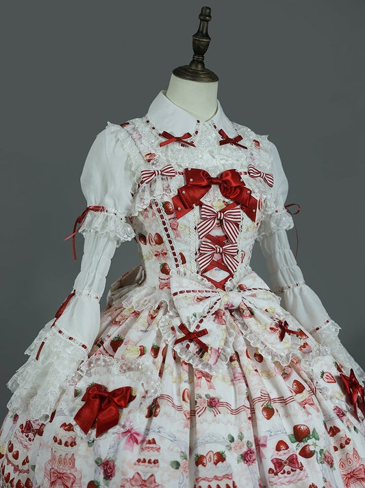 Robe mi-longue trapèze à manches courtes et col à volants avec broderie florale