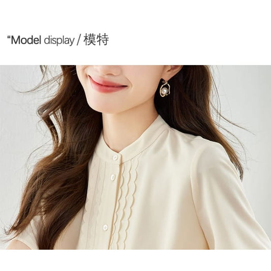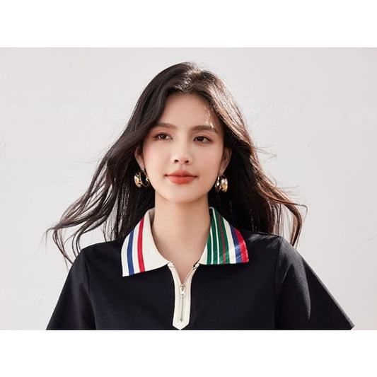 Short-Sleeve A-Line Dress Plain Mini Collar