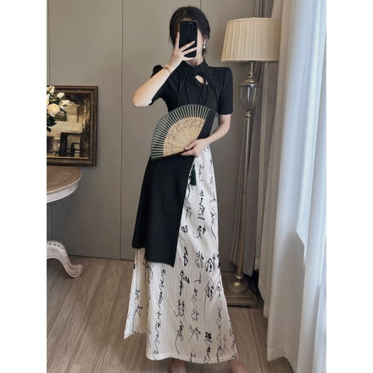 Short-Sleeve Crane Mini Qipao
