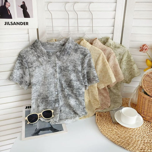 Haut en tricot tie dye à manches courtes et col