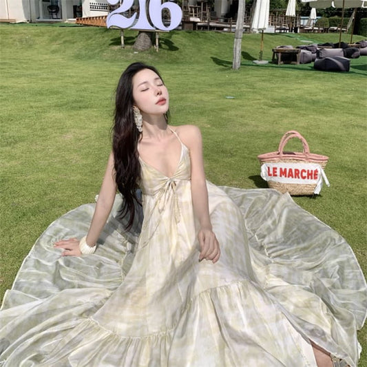Robe mi-longue plissée à bretelles spaghetti et dégradé