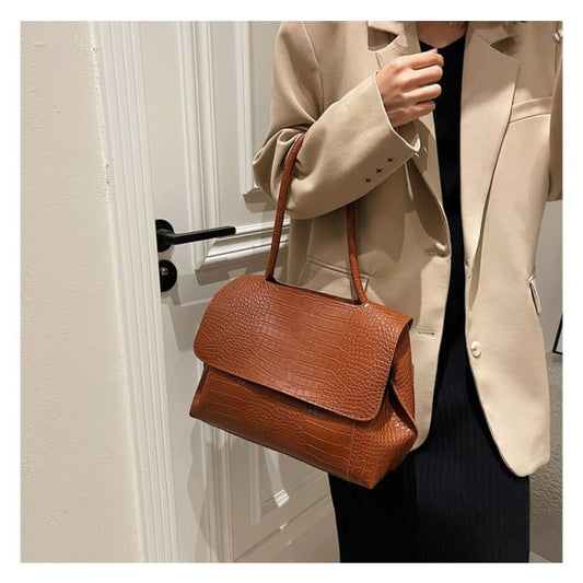 Crocodile Grain Faux Leather Flap Crossbody Bag