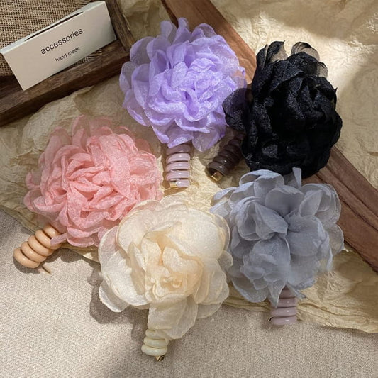 Pic à cheveux en bois avec fausses perles et tissu fleuri