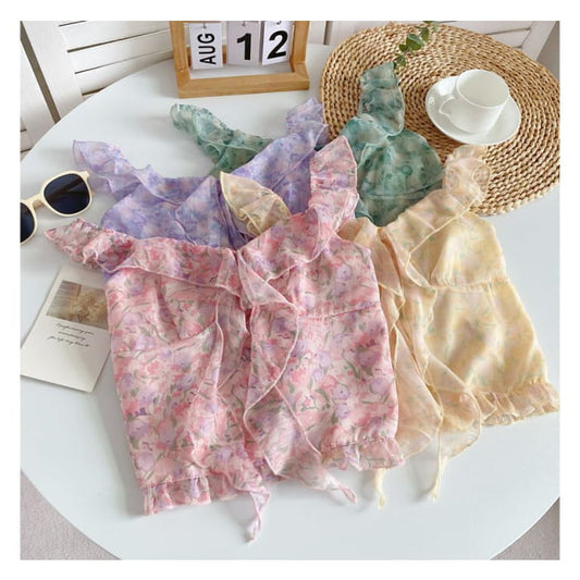 Haut caraco à volants et imprimé floral